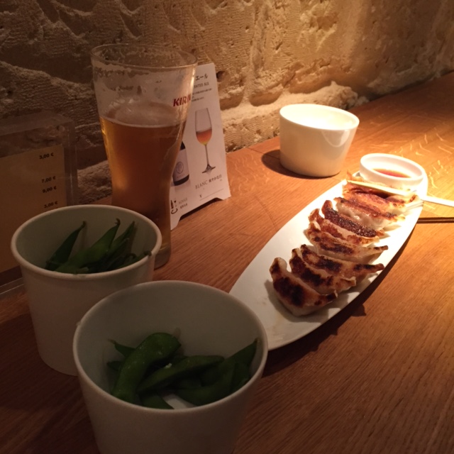 Dans un cadre minimalise mais néanmoins agréable on  peut choisir de s’installer sur le grand comptoir en bois qui fait office de bar ou on peut voir les gyozas se faire griller, le long du mur ou sur un table au fond, plus intime.