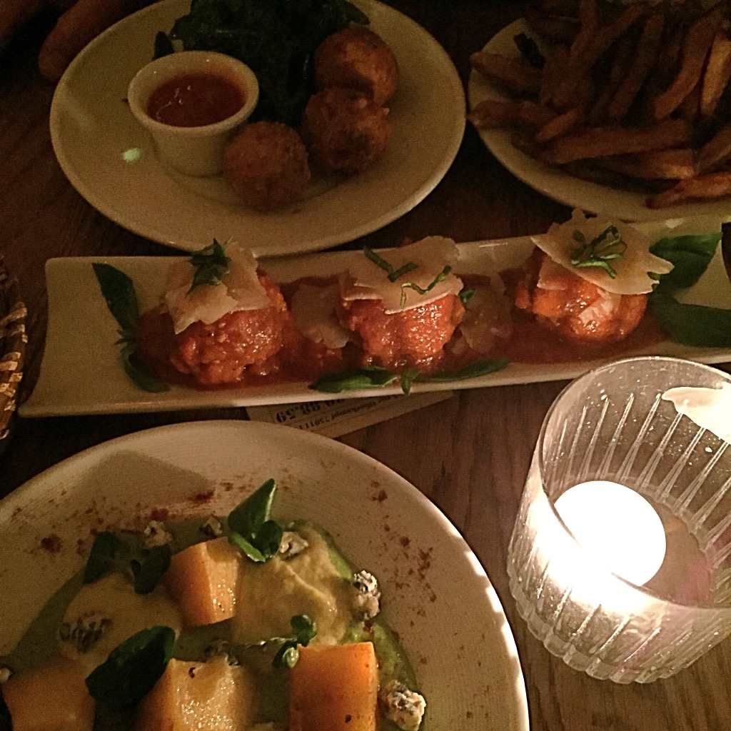 Des tapas bien sur à partager. Les Meatballs (qui sont complètement folles), on a aussi gouté au « Butternenut Squash, crème Cresson Poireaux, Bleu d’Auvergne et Piment Oiseau », avec des frites maison et leur mayonnaise au cumi et les « Croquettes de Jarret de Porc, cheddar et estragon ». 4 plats pour 2 nous on parfaitement calés.