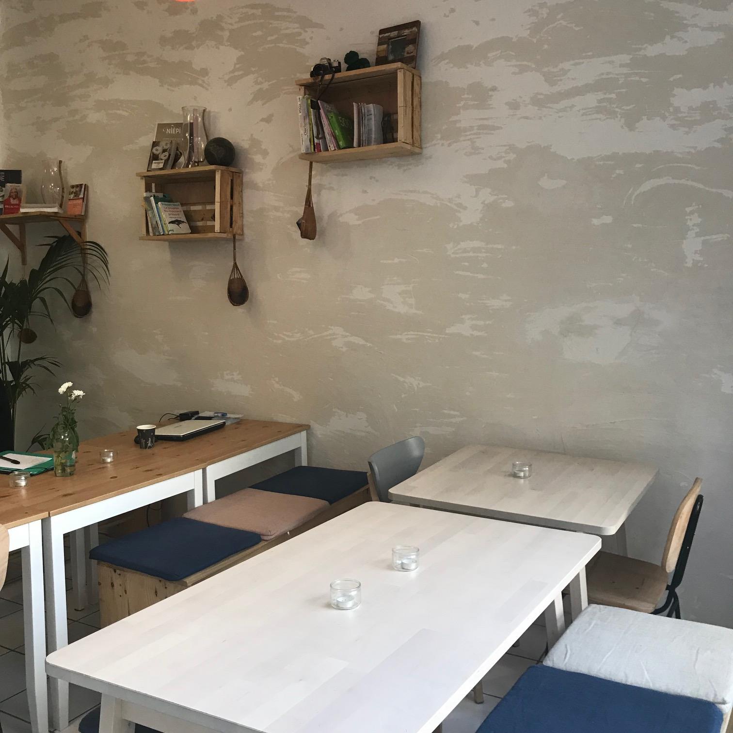 Ici tout est fait maison avec des produits frais, de qualité et de saison. La cuisine est bien entendue végétarienne et sans gluten : salades, budha bowls, sandwiches, soupes. Vous pouvez manger au bar et papoter avec l’équipe ou rester sur les jolies tables en bois et bouquiner dans la bibliothèque mise à votre disposition.