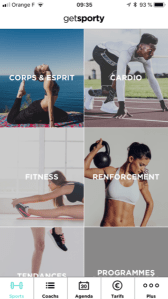 Get Sporty vous propose d’amener le sport à votre domicile. Ici, le système est différent de son concurrent Train Me. Déjà, clairement, l’application est plus belle et plus ergonomique. Le vrai bon point : avoir inséré une rubrique « corps & esprit » qui comprend 4 disciplines : le yoga, la méditation, le yoga pre-post natal et le Pilates.